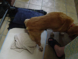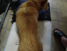 「やっぱアイスピローはピローって名前なんだから頭につければ気持ちいハズ」 と思ったのかベスを横たわらせる母。 キャー!カワイイベス!!ねぇねぇかわいい写真撮れたよ~!! と思ったのもつかの間 |