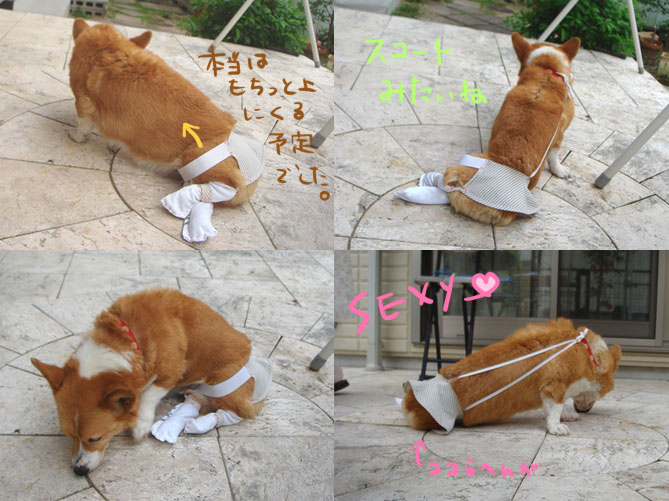 私も腰から首にかけては布と紐とゴム、迷ったんですがベスがクネクネ動くので伸び縮みするほうがいいかな~と思いまして。引っ張ってキツめに結んだんですけどね~やっぱ全体的に無理があったようだす。