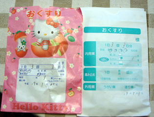 初診と三回目の時貰ったのが右の袋、二回目はキティーちゃん…何故?!