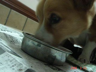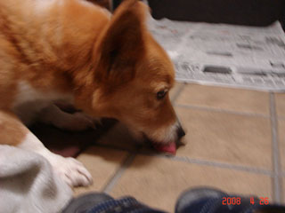 今日のベス。まさにご飯をもらう前なのに興奮して床をペロペロ