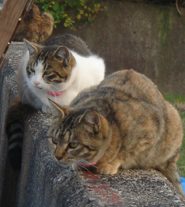 今日の散歩で会ったネコ。前の記事で「ビカー!」っと目が光ってた子たちです。