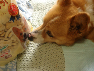 コーギーがパッケージの新しいオヤツは硬くて割れないので
