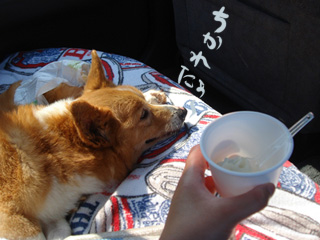 ソフトクリームに目もくれず?おとなしくしとりました。