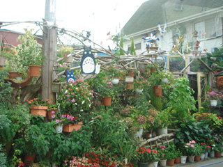 お庭スゴイですよね。花屋さんみたいなんですけど、(中には入ってない)