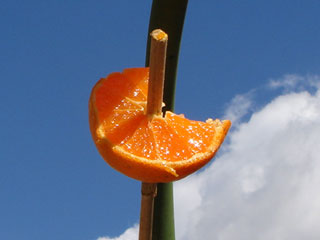 ウチの庭には蜜柑がささってるトコがあります。