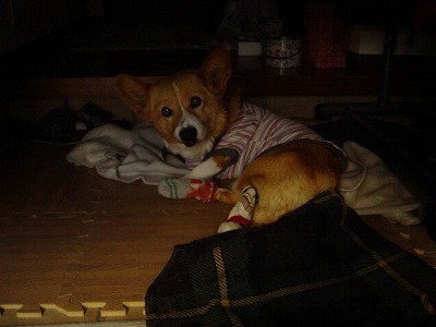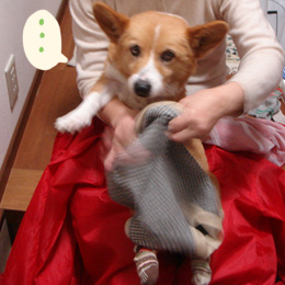 お洋服の着替え風景を。1回目は「ウ~」ってうなったみたいだけど