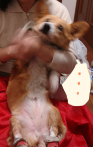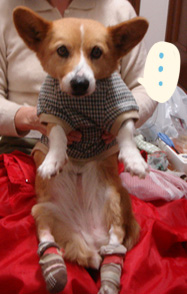 ベスには短めだし、カバーオールじゃないので傷は隠れないけど。よかったね