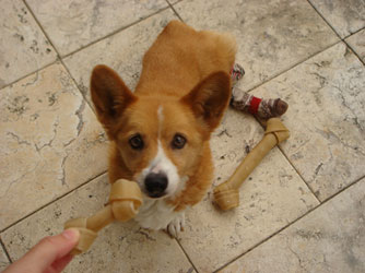 母がベスの寝床に大きいホネを置いてくれたんですが、