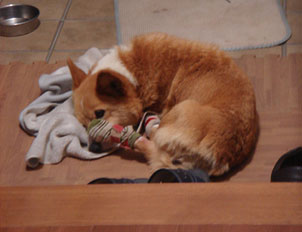 ず~~~っと噛んでます。噛み付かれて寝床に戻ってぐっすり寝たんだそうです。