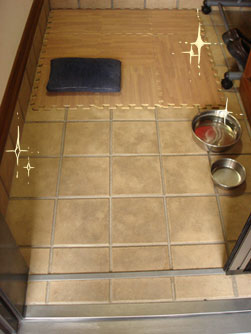 タイルがジョリジョリしてるので毛がなかなか取れなくて大変なのです。