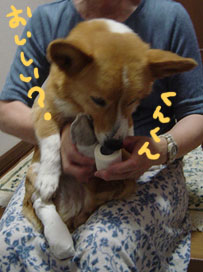 という包帯を使って見ました。ちゃんとパッケージに「ペットにも」みたいなことが書いてありました。