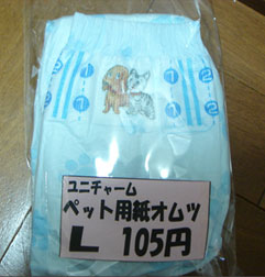 昨晩始めて着用したお試し用の紙オムツ。そのまま穿くタイプ。