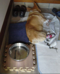 あ、あと玄関掃除&改装の間、新しく買ったおもちゃ(画像右下の赤いの)